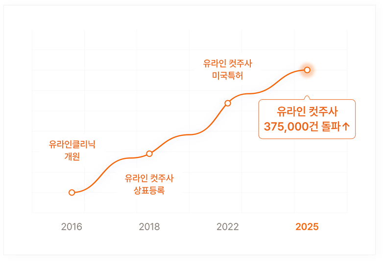 내원하신 고객님들의 375,000번의 선택.그 선택이 만든 변화의 순간, 유라인 컷주사가 함께했습니다.